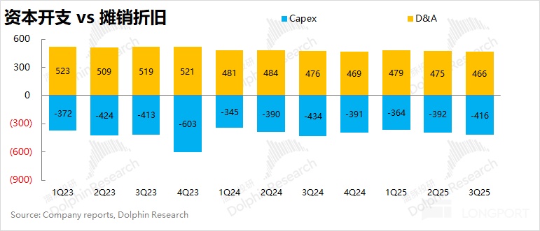 隨著資本投入的減少,公司折舊&攤銷相關支出將進一步下降,進而推動公司利潤端的釋放。