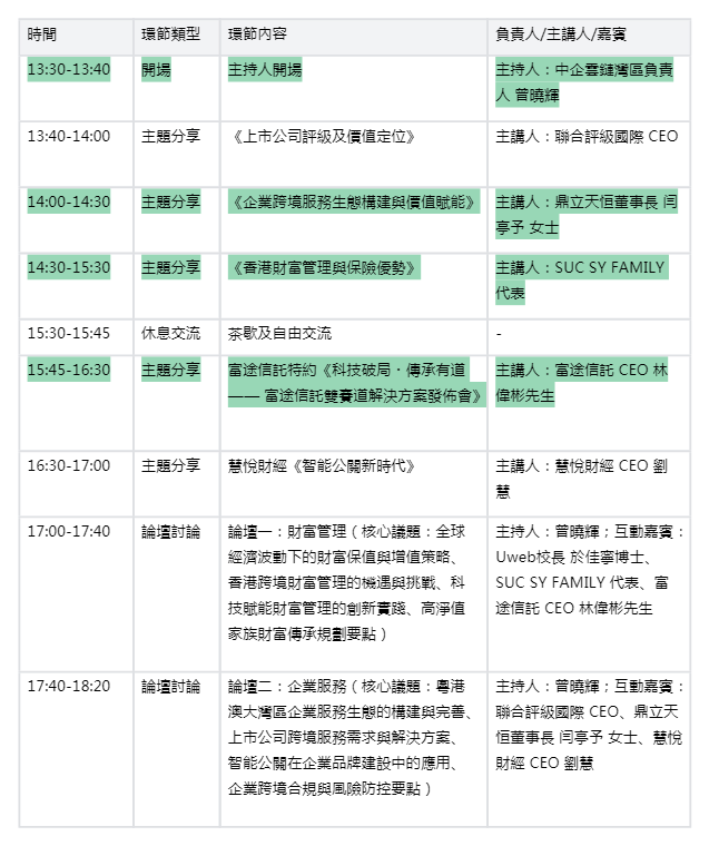 (2)SUC SY FAMILY 代表:深耕家族財富管理,具備豐富跨境財富規劃實戰經驗,熟悉香港及全球財富管理市場動態,可結合實操案例分享跨境財富管理的核心要點與實踐心得。