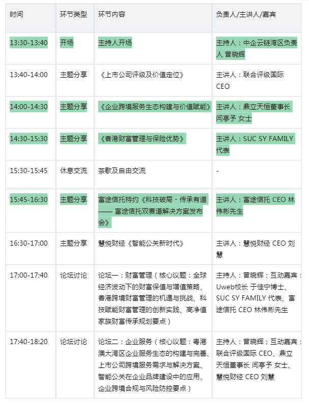 本次分会场聚焦财富管理与企业服务核心领域,通过行业领军人物的主题分享与高端论坛讨论,搭建起企业与行业专家、服务机构之间的精准对接平台。一方面,助力企业深入了解香港在财富管理、保险、信托、评级等领域的独特优势,把握行业最新发展趋势;另一方面,为企业提供多元化的解决方案参考,涵盖财富传承、跨境服务、品牌公关、合规防控等多个维度,切实赋能企业高质量发展。同时,推动行业内的交流与合作,助力构建更加完善、高效的财富管理与企业服务生态体系。