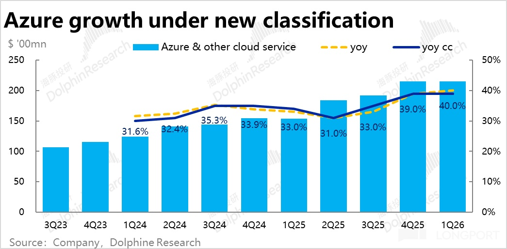 1、Azure沒有意外之喜:最受關注的Azure業務,本季營收同比增長40%,剔除匯率影響增速則為39%,不變口徑下和上季增速一致。