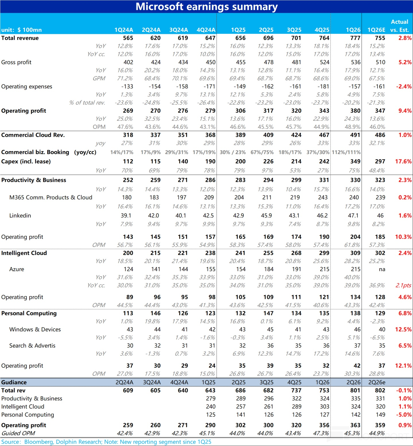 無論從任何角度看,微軟本季業績都沒有明顯缺陷,仍是第一流的穩健交付能力。