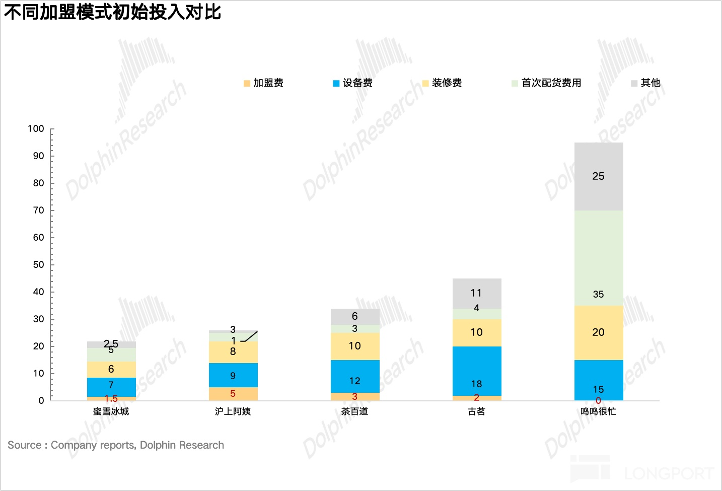 海豚君在《「現飲界拼多多」 蜜雪冰城 :「雪王」 封王底氣何在?》說過加盟商在選擇品牌加盟時無非考慮三個因素:前期投入(資本門檻),回本周期(ROI)以及品牌自身的吸引力(成功保障)。